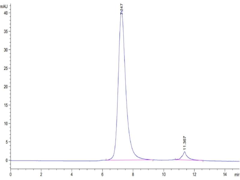 The purity of the protein is greater than 95 % as determined by SDS-PAGE and Coomassie blue staining.