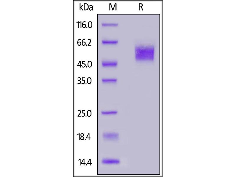 The purity of the protein is greater than 95 % as determined by SDS-PAGE and Coomassie blue staining.