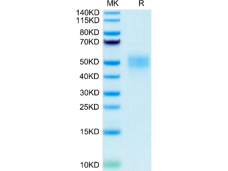 The purity of the protein is greater than 95 % as determined by SDS-PAGE and Coomassie blue staining.