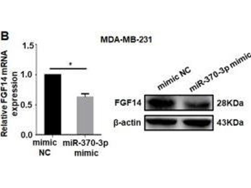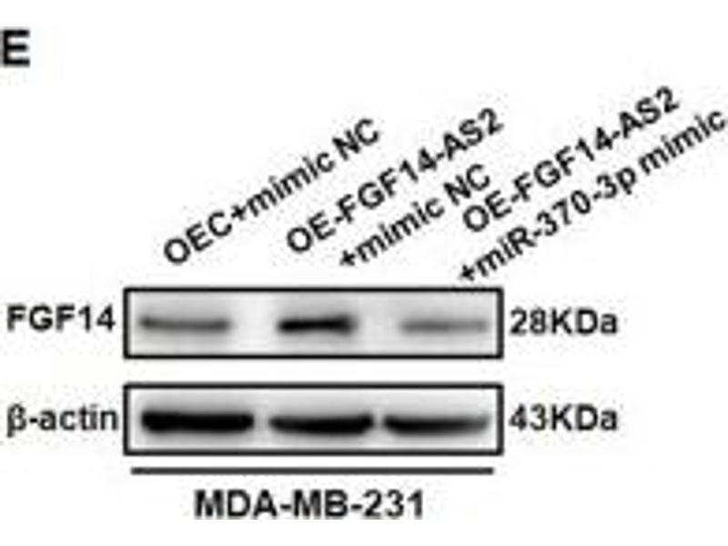 Jin, Zhang, Duan, Yang, Yang, Wang, Jiang, Yao, Li, Yuan, Zha, Ma: "Long noncoding RNA FGF14-AS2 inhibits breast cancer metastasis by regulating the miR-370-3p/FGF14 axis." in: Cell death discovery, Vol. 6, pp. 103, (2020) (PubMed).