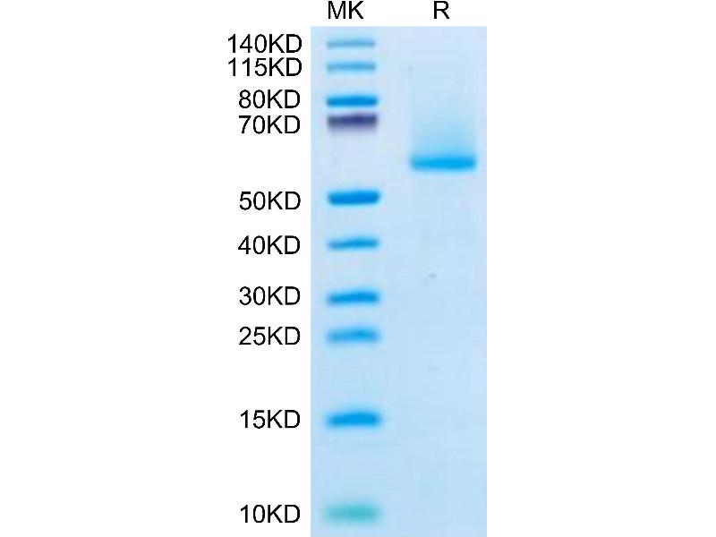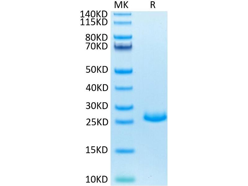The purity of the protein is greater than 95 % as determined by SDS-PAGE and Coomassie blue staining.