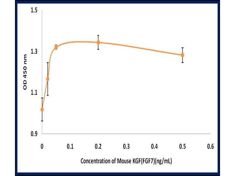 The protein encoded by this gene is a member of the fibroblast growth factor (FGF) family. FGF family members possess broad mitogenic and cell survival activities, and are involved in a variety of biological processes, including embryonic development, cell growth, morphogenesis, tissue repair, tumor growth and invasion. This protein is a potent epithelial cell-specific growth factor, whose mitogenic activity is predominantly exhibited in keratinocytes but not in fibroblasts and endothelial cells. Studies of mouse and rat homologs of this gene implicated roles in morphogenesis of epithelium, reepithelialization of wounds, hair development and early lung organogenesis. [provided by RefSeq, Jul 2008].