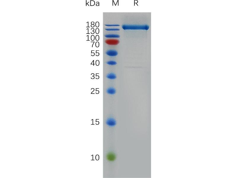 The purity of the protein is greater than 95 % as determined by SDS-PAGE and Coomassie blue staining.