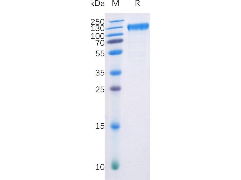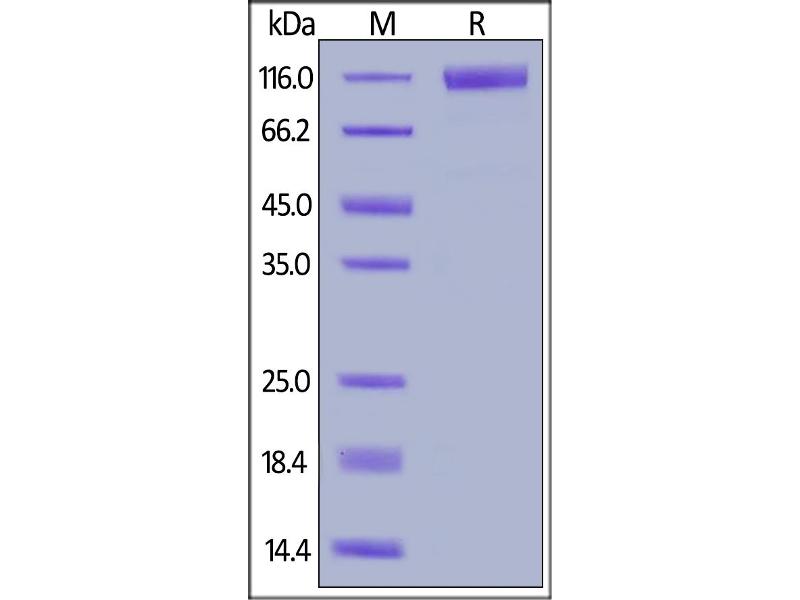 The purity of the protein is greater than 95 % as determined by SDS-PAGE and Coomassie blue staining.