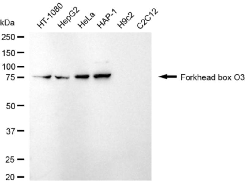 Explore reliable FOXO3 antibodies from a broad selection of renowned manufacturers. Our portfolio enables accurate FOXO3 detection across multiple species, including Human, Mouse, Rat, Dog, Cow, Pig, Horse, Rabbit, Sheep, Chicken, Guinea Pig, Monkey, Bat, Hamster, Xenopus laevis, Zebrafish (Danio rerio), and supports diverse research applications such as WB, IHC, IF, ELISA, ICC.