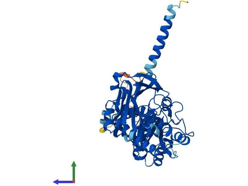 The protein encoded by this gene is a putative transmembrane protein that is localized to the cis-Golgi compartment, where it may be involved in the glycosylation of alpha-dystroglycan in skeletal muscle. The encoded protein is thought to be a glycosyltransferase and could play a role in brain development. Defects in this gene are a cause of Fukuyama-type congenital muscular dystrophy (FCMD), Walker-Warburg syndrome (WWS), limb-girdle muscular dystrophy type 2M (LGMD2M), and dilated cardiomyopathy type 1X (CMD1X). Alternatively spliced transcript variants have been found for this gene. [provided by RefSeq, Nov 2010].