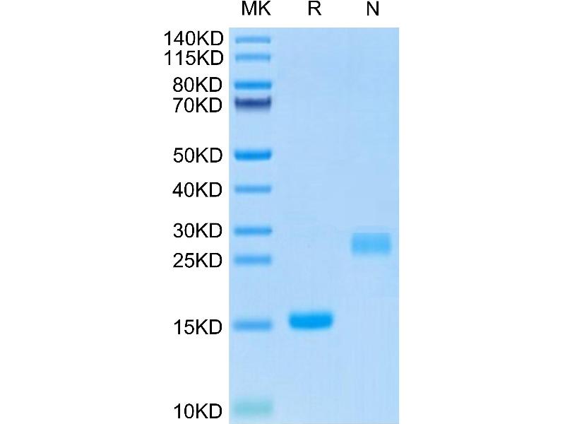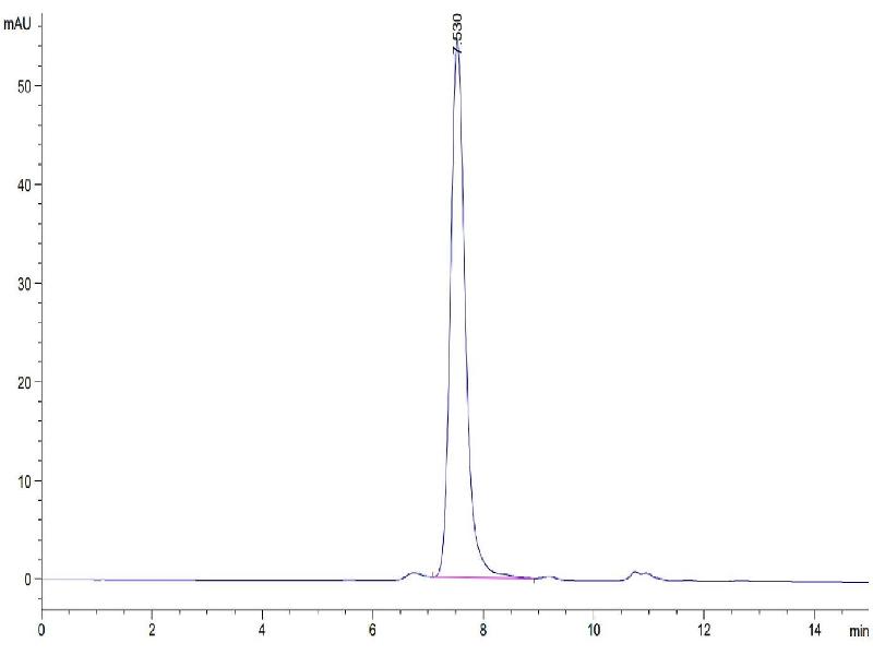 The purity of the protein is greater than 95 % as determined by SDS-PAGE and Coomassie blue staining.