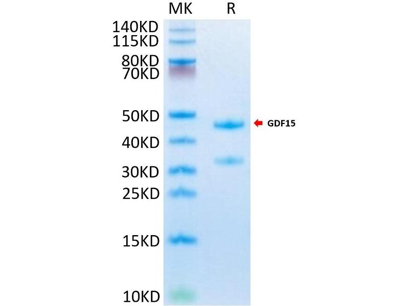The purity of the protein is greater than 90 % as determined by SDS-PAGE and Coomassie blue staining.