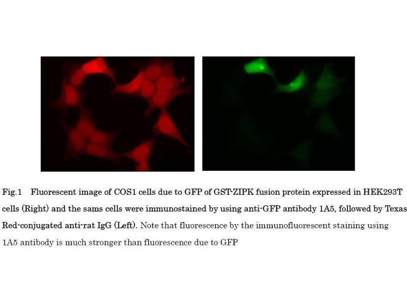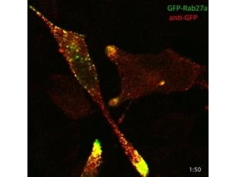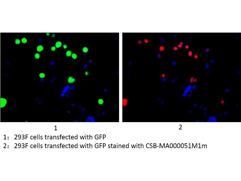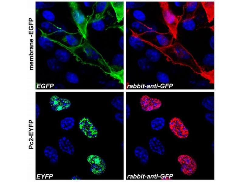 Immunofluorescence and microscopy: GFP antibodies are utilized in immunofluorescence experiments to visualize and localize GFP-tagged proteins within fixed cells or tissues. By using secondary antibodies conjugated to fluorophores, such as Alexa Fluor or DyLight dyes, the GFP antibodies can be detected and visualized under a fluorescence microscope. This technique enables researchers to study protein localization, interactions, and dynamics in real-time.