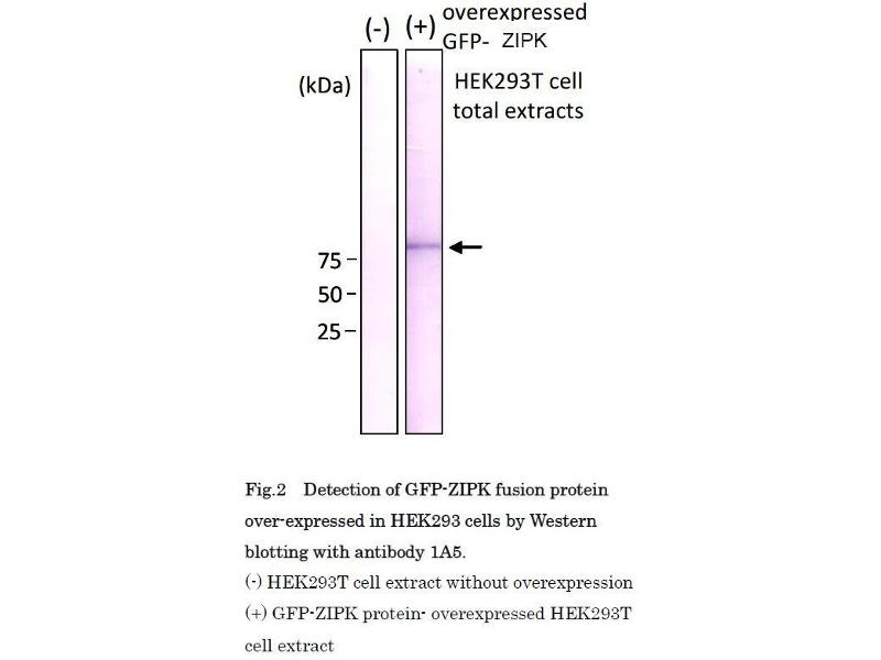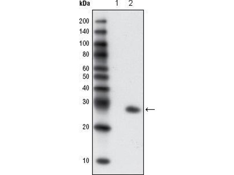 GFP antibodies are widely used to detect fusion proteins via Western blotting. A fusion protein is created by genetically fusing the GFP gene to a gene of interest, resulting in the production of a chimeric protein that contains both the GFP portion and the protein of interest. The GFP moiety acts as a tag, allowing researchers to track and visualize the fusion protein within cells or tissues. The resulting signal on the Western blot indicates the presence and size of the fusion protein. Secondary antibodies conjugated to an enzyme, such as horseradish peroxidase (HRP) can be used to amplify the signal.