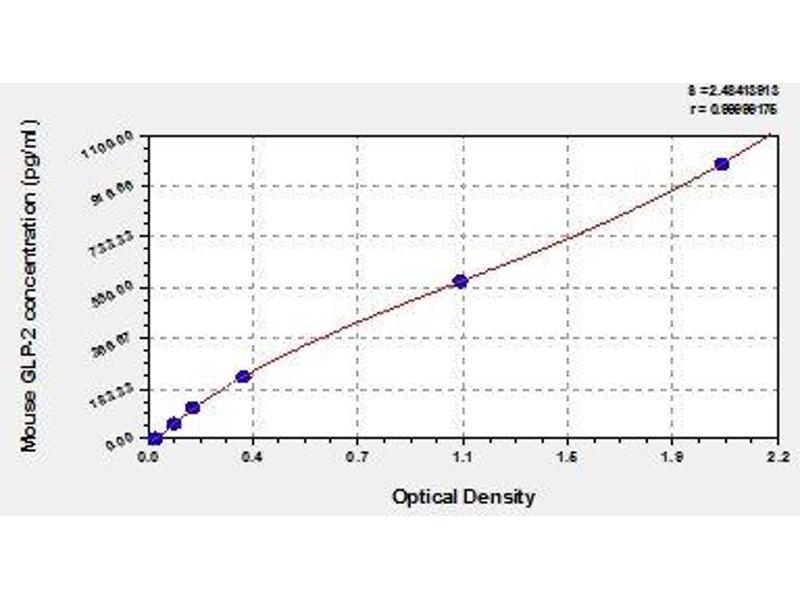 GLP-2 Reactivity: Mouse Colorimetric Competition ELISA 24.69 pg/mL - 2000 pg/mL Plasma, Serum