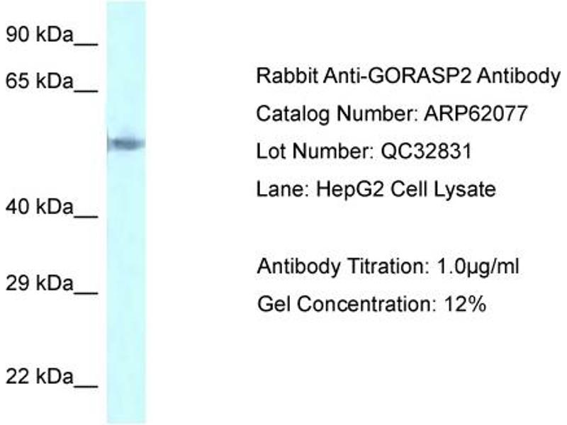 GORASP2 Reactivity: Human WB Host: Rabbit Polyclonal unconjugated