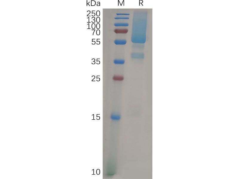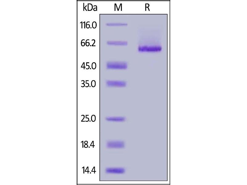 The purity of the protein is greater than 85 % as determined by SDS-PAGE and Coomassie blue staining.