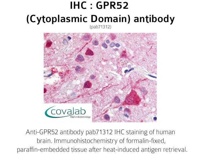 : "Identification and cloning of three novel human G protein-coupled receptor genes GPR52, PsiGPR53 and GPR55: GPR55 is extensively expressed in human brain." in: Brain research. Molecular brain research, Vol. 64, Issue 2, pp. 193-8, (1999) (PubMed).Aliases for GPR52 Antibodies