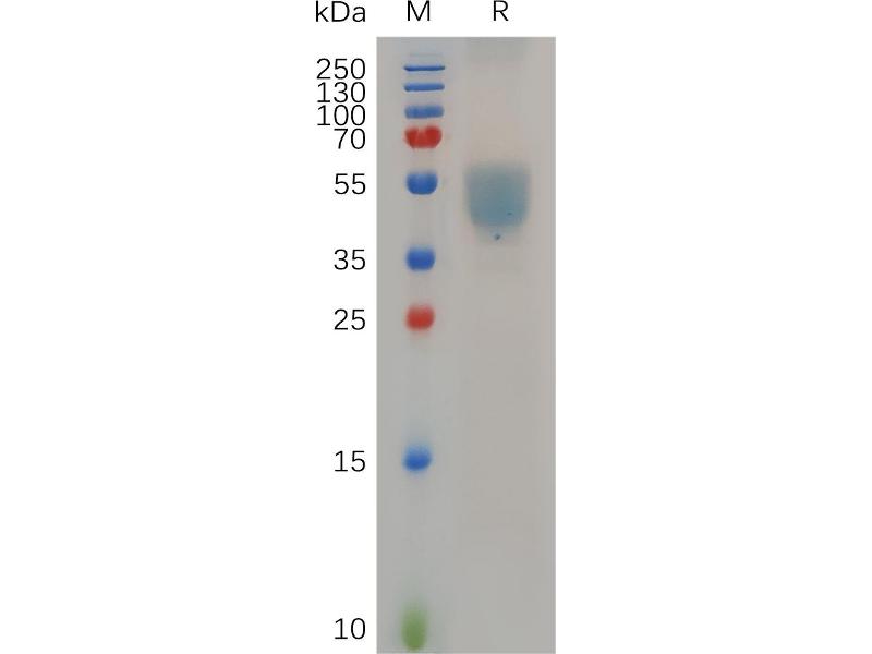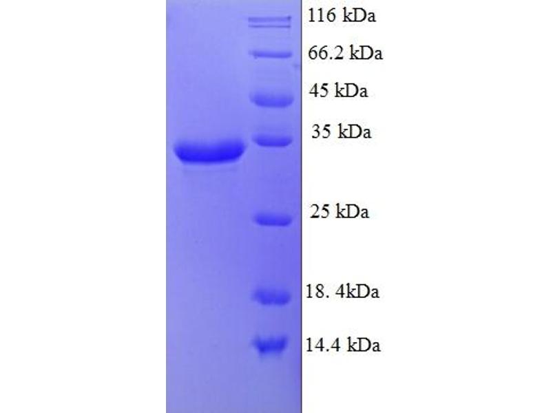 The purity of the protein is greater than 95 % as determined by SDS-PAGE and Coomassie blue staining.