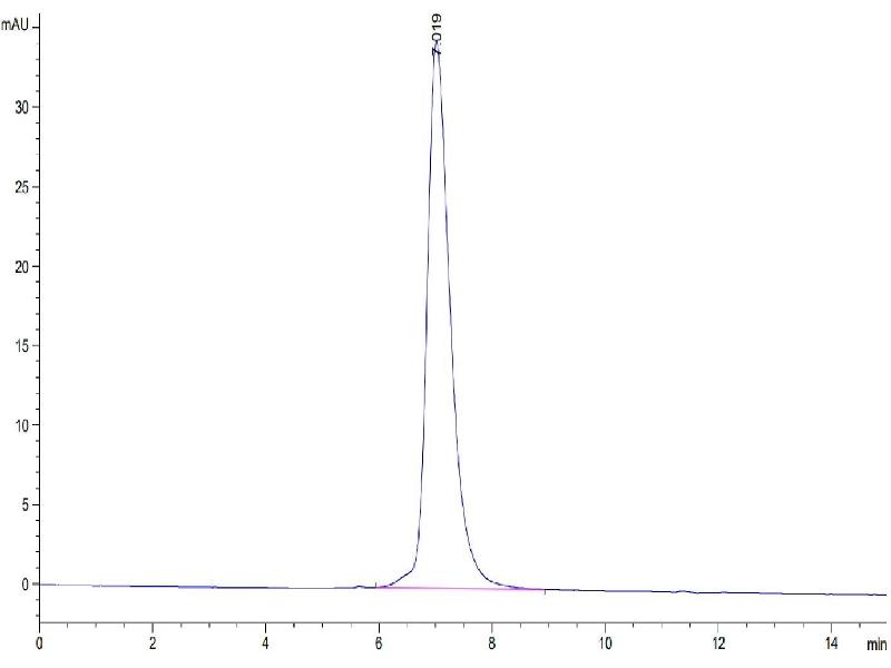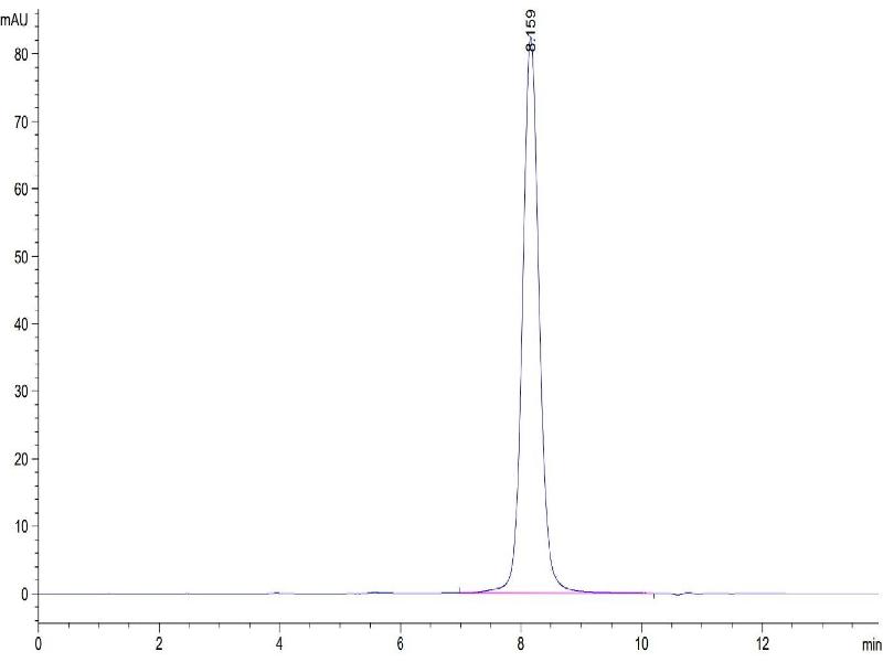 The purity of the protein is greater than 95 % as determined by SDS-PAGE and Coomassie blue staining.