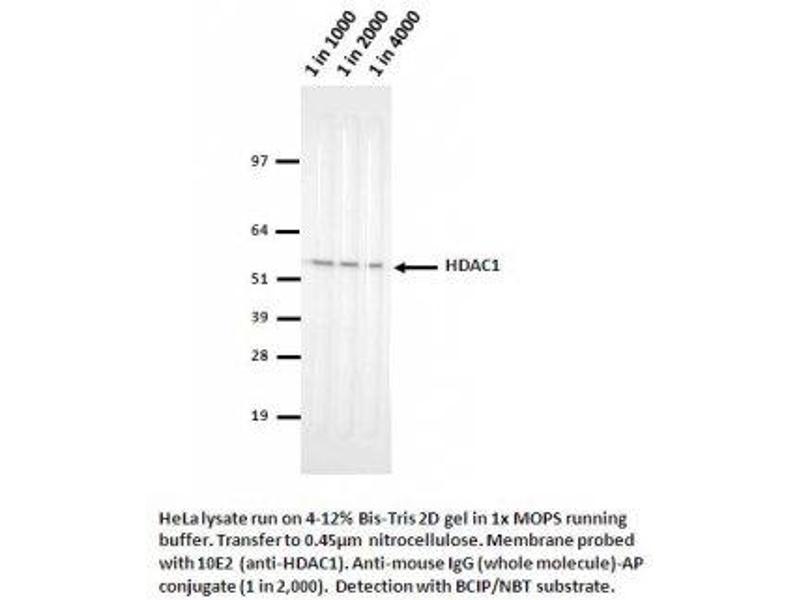 HDAC1 Reactivity: Human, Mouse, Rat WB, IF, ICC, IP, FACS, IHC (p), ChIP Host: Mouse Monoclonal 1-00E-003 unconjugated