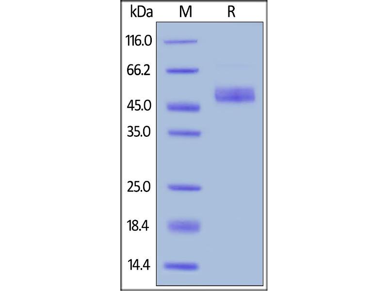 The purity of the protein is greater than 95 % as determined by SDS-PAGE and Coomassie blue staining.