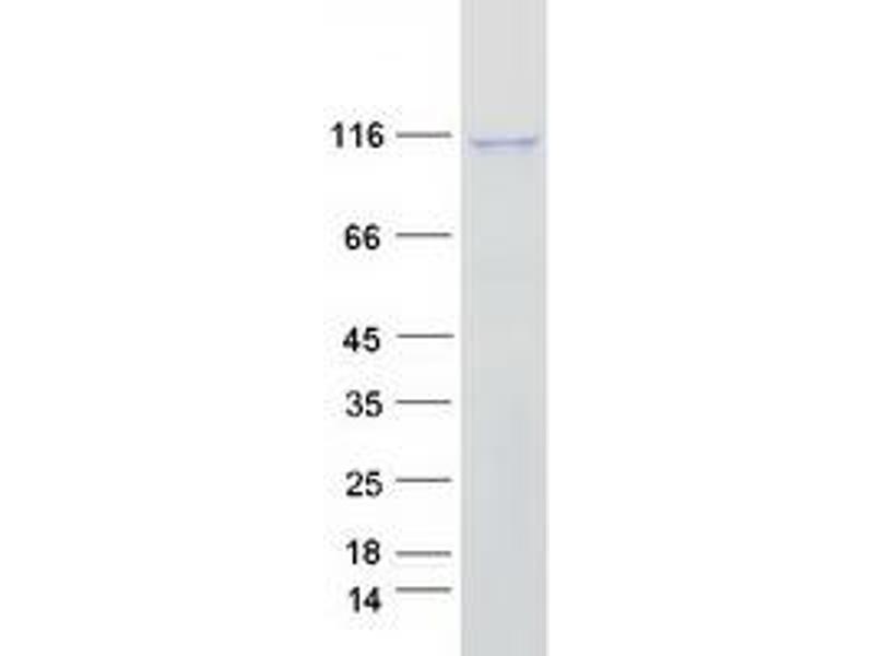 The purity of the protein is greater than 80 % as determined by SDS-PAGE and Coomassie blue staining.