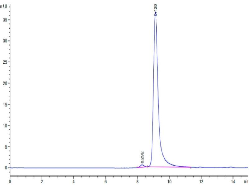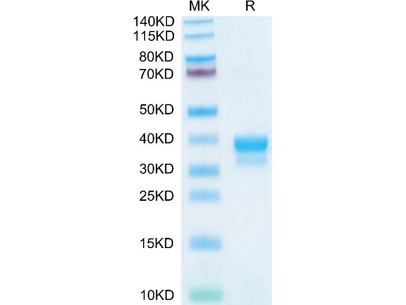 The purity of the protein is greater than 85 % as determined by SDS-PAGE and Coomassie blue staining.