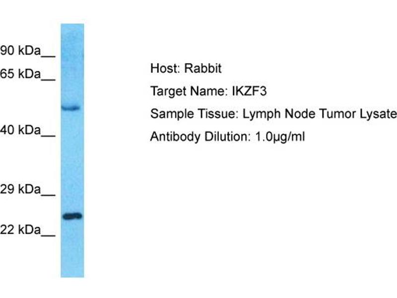 IKZF3 Reactivity: Human, Mouse, Rat, Cow, Dog, Rabbit, Guinea Pig, Horse, Zebrafish (Danio rerio) WB Host: Rabbit Polyclonal unconjugated