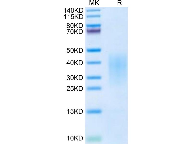 The purity of the protein is greater than 95 % as determined by SDS-PAGE and Coomassie blue staining.