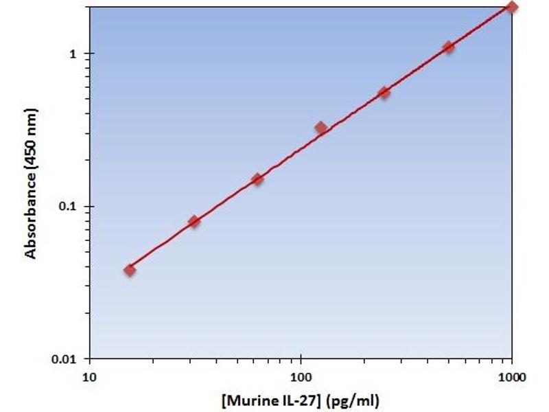 IL27 Reactivity: Mouse Colorimetric Sandwich ELISA 7.813 pg/mL - 500 pg/mL Plasma, Serum, Tissue Homogenate