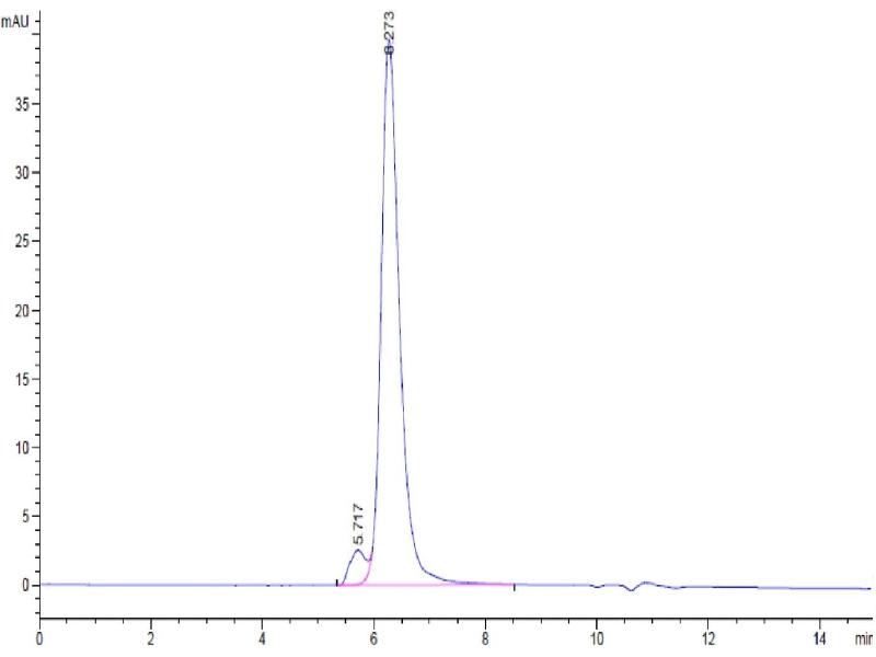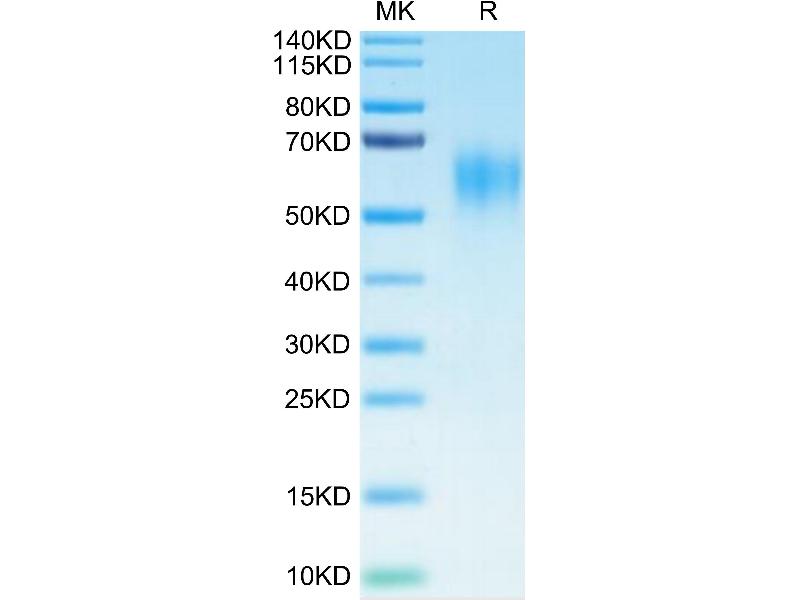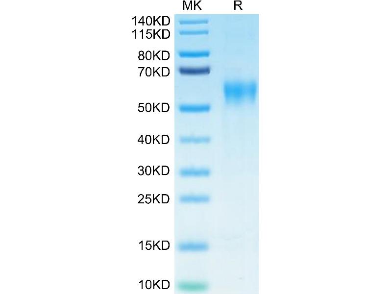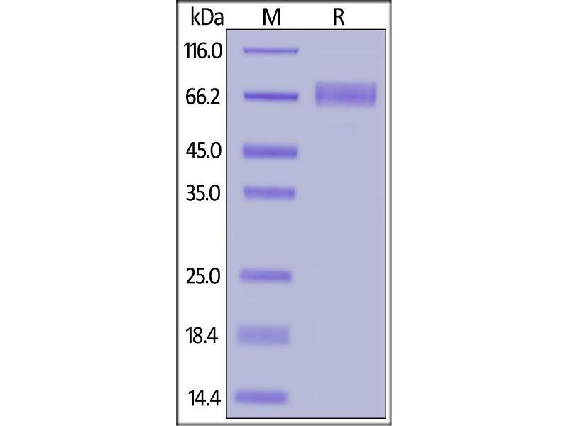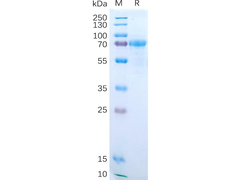 The purity of the protein is greater than 95 % as determined by SDS-PAGE and Coomassie blue staining.