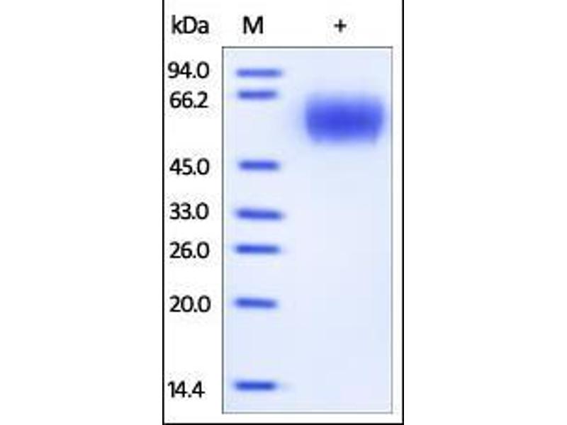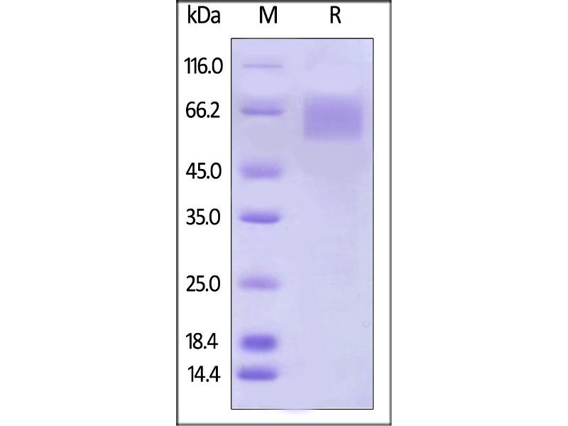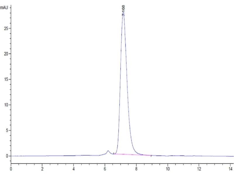 The purity of the protein is greater than 95 % as determined by SDS-PAGE and Coomassie blue staining.