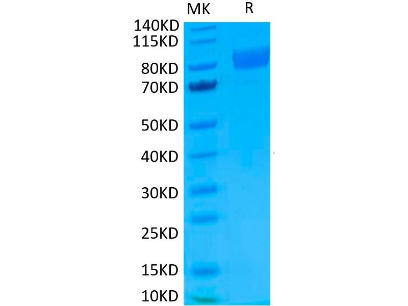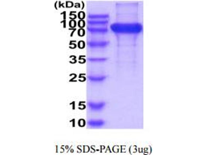 The purity of the protein is greater than 85 % as determined by SDS-PAGE and Coomassie blue staining.