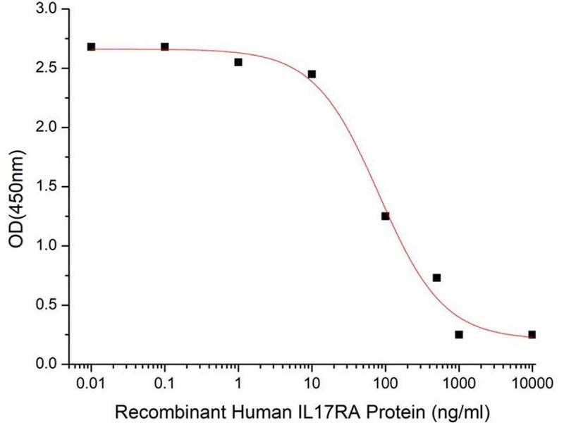 Interleukin 17A (IL17A)is a proinflammatory cytokine secreted by activated T-lymphocytes. It is a potent inducer of the maturation of CD34-positive hematopoietic precursors into neutrophils. The protein encoded by this gene (interleukin 17A receptor\; IL17RA) is a ubiquitous type I membrane glycoprotein that binds with low affinity to interleukin 17A. Interleukin 17A and its receptor play a pathogenic role in many inflammatory and autoimmune diseases such as rheumatoid arthritis. Like other cytokine receptors, this receptor likely has a multimeric structure. [provided by RefSeq, Jul 2008].