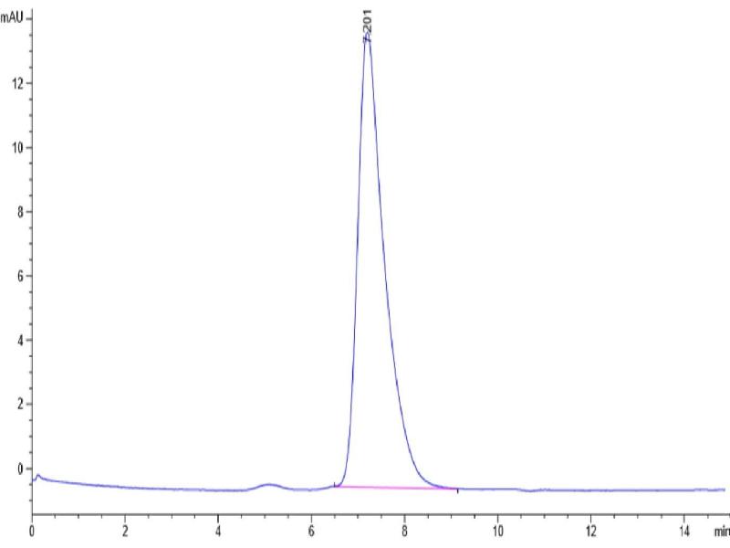 The purity of the protein is greater than 85 % as determined by SDS-PAGE and Coomassie blue staining.