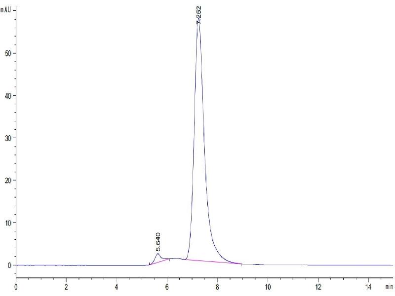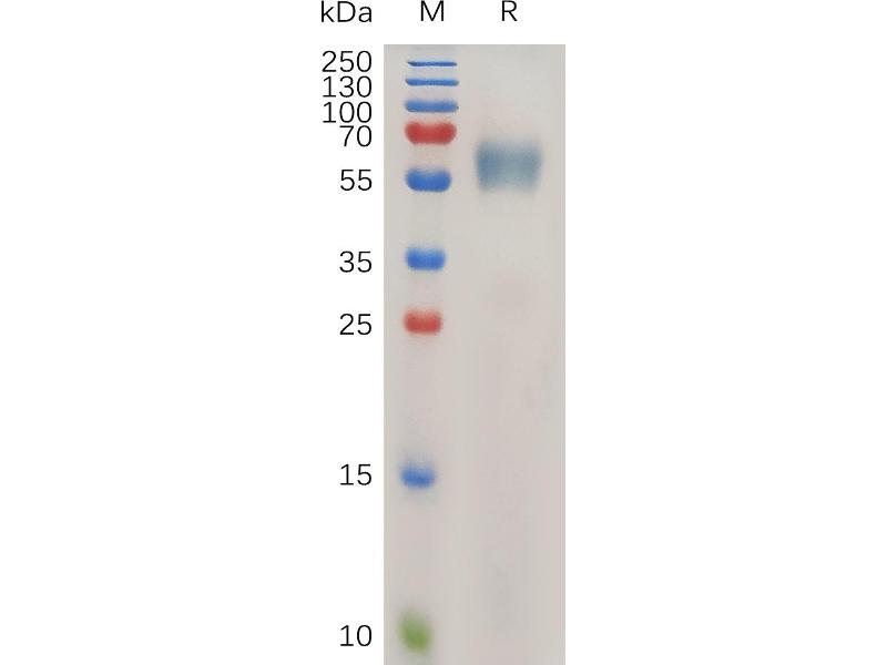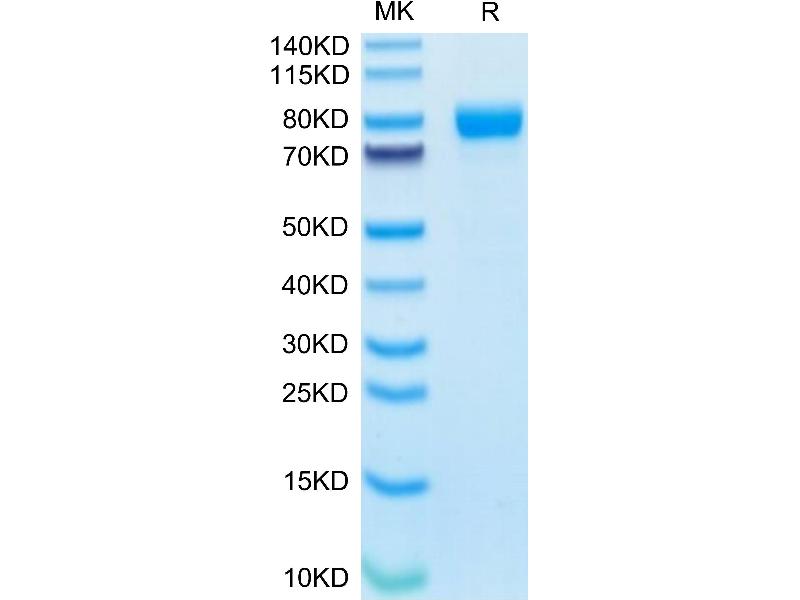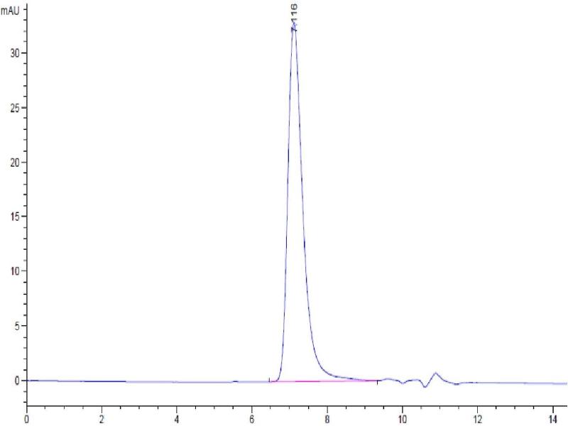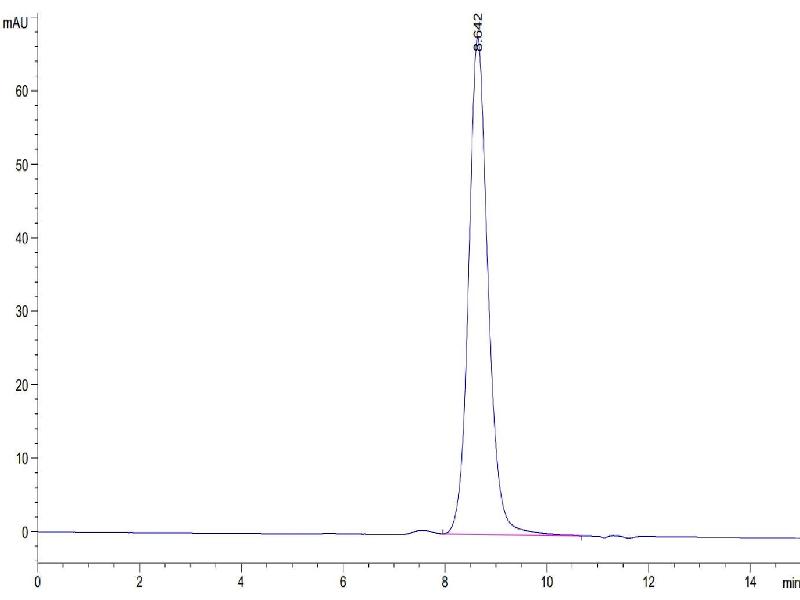 The purity of the protein is greater than 85 % as determined by SDS-PAGE and Coomassie blue staining.
