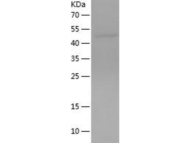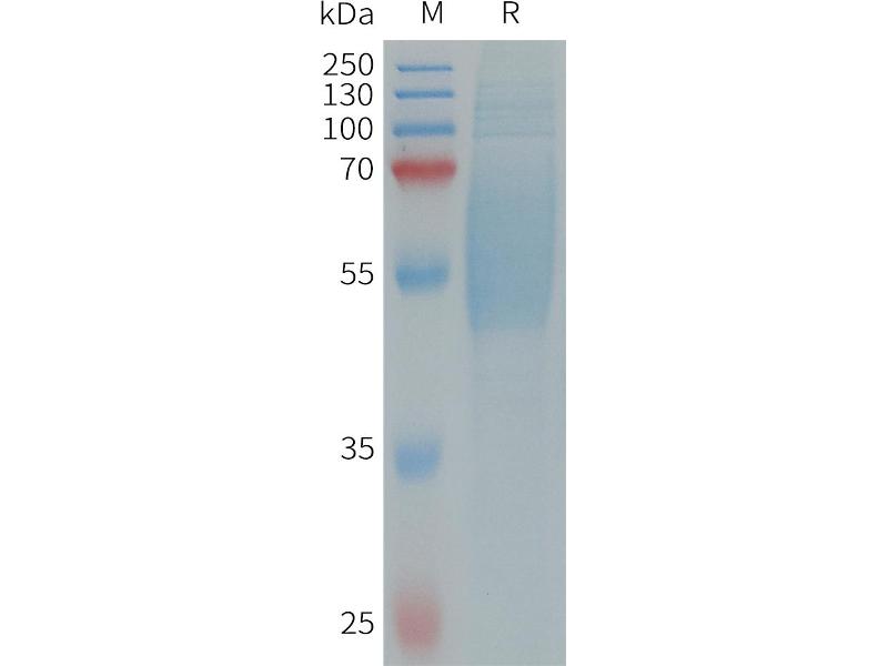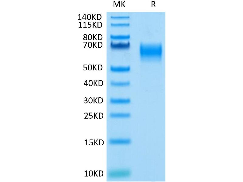 The purity of the protein is greater than 85 % as determined by SDS-PAGE and Coomassie blue staining.