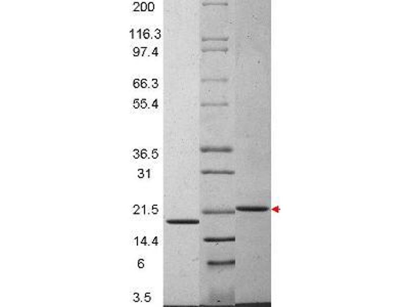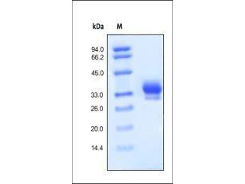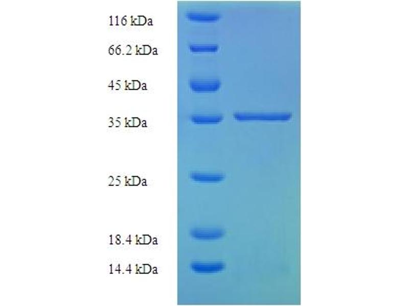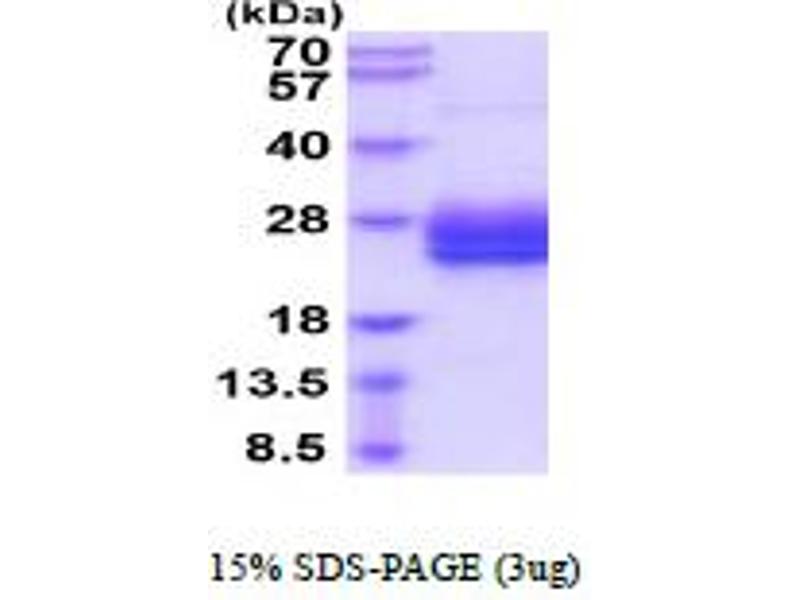 The purity of the protein is greater than 95 % as determined by SDS-PAGE and Coomassie blue staining.