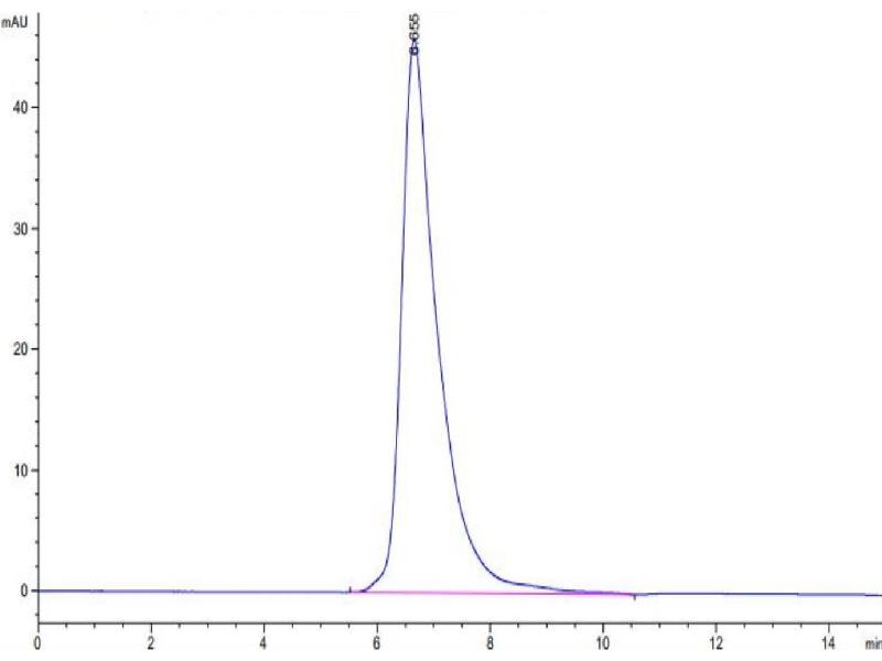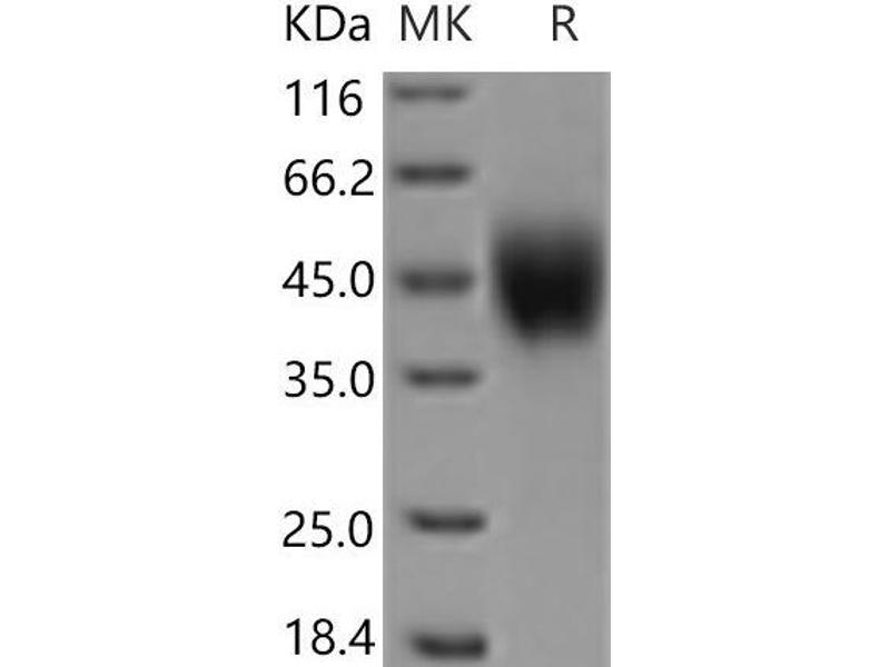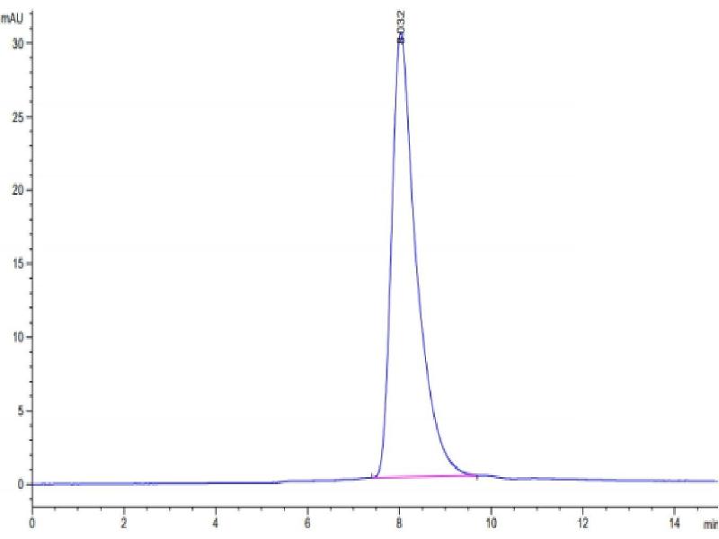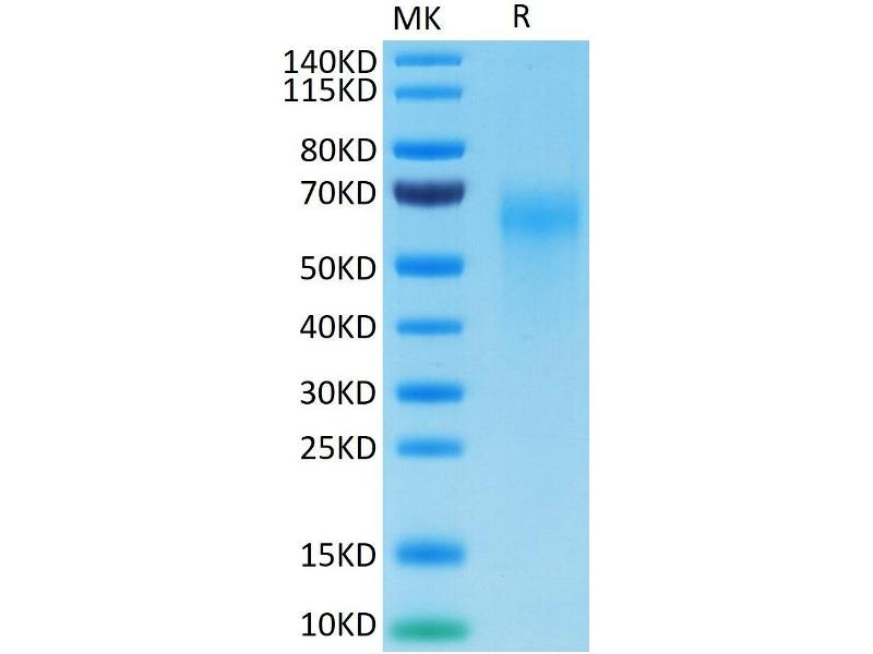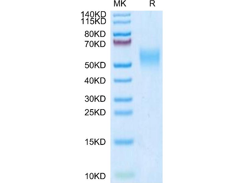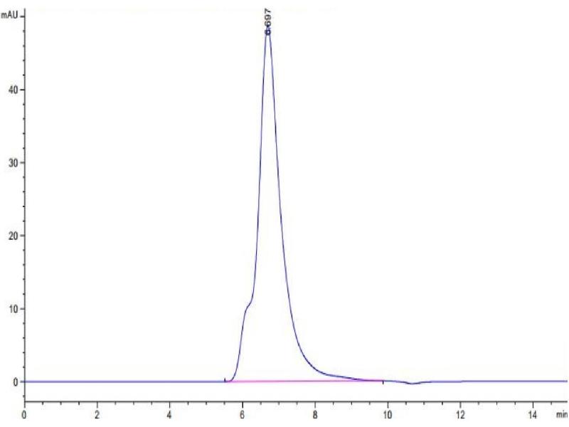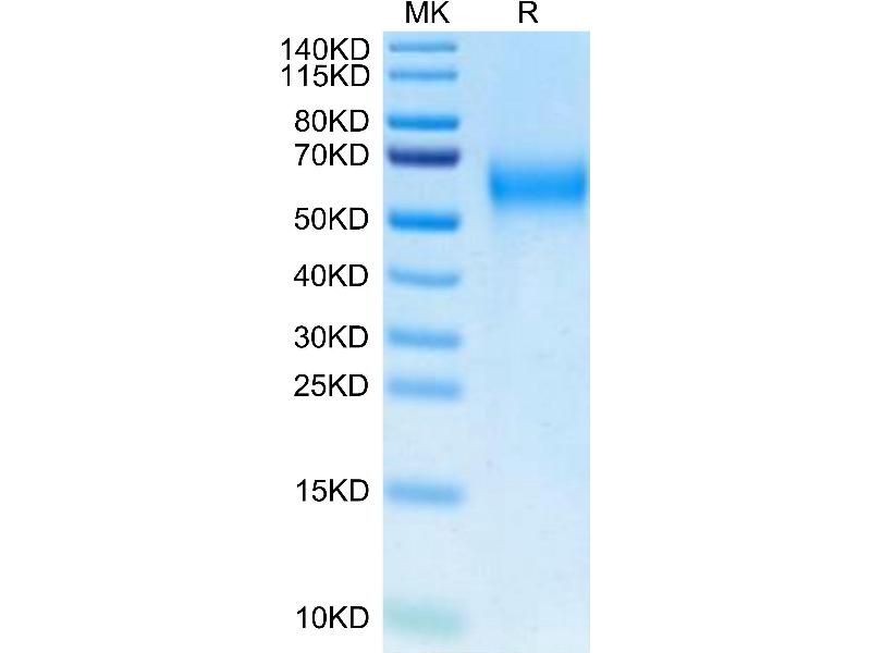 The purity of the protein is greater than 95 % as determined by SDS-PAGE and Coomassie blue staining.