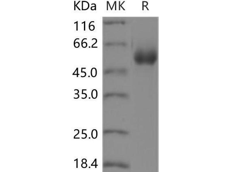 The purity of the protein is greater than 95 % as determined by SDS-PAGE and Coomassie blue staining.