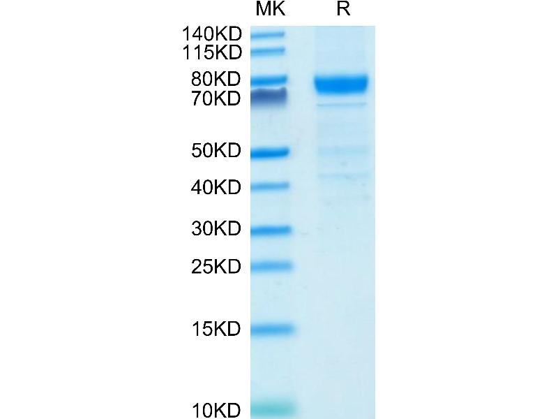 The purity of the protein is greater than 95 % as determined by SDS-PAGE and Coomassie blue staining.