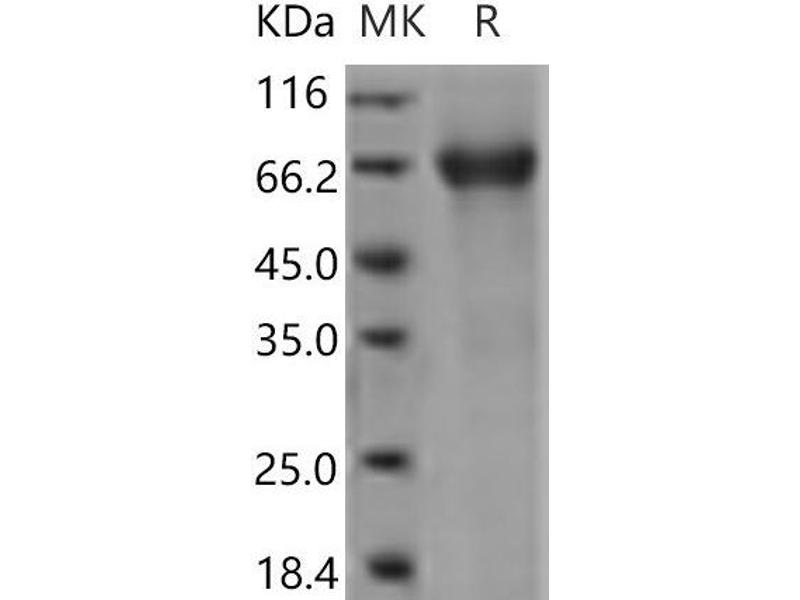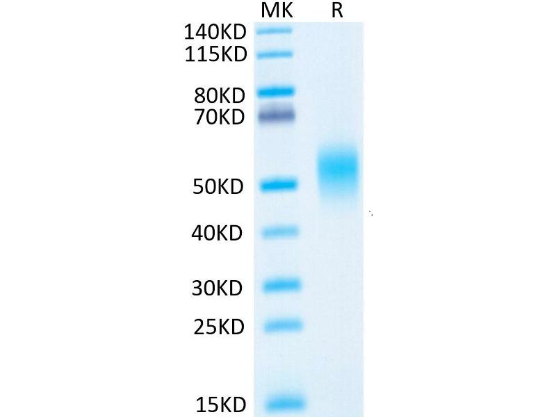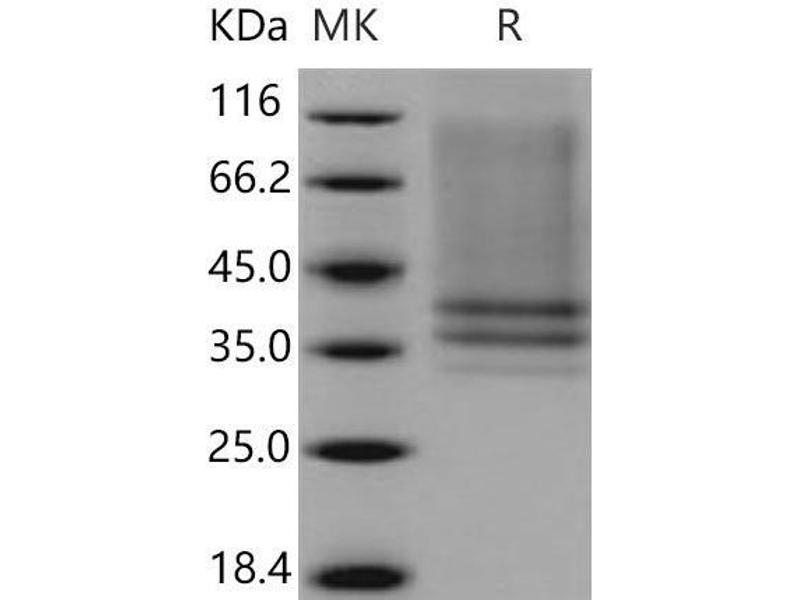 The purity of the protein is greater than 95 % as determined by SDS-PAGE and Coomassie blue staining.