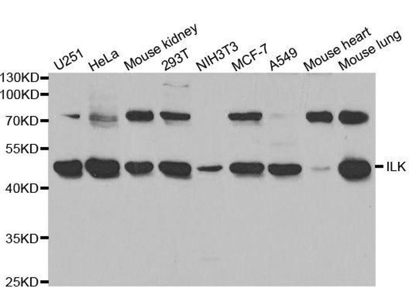 ILK Reactivity: Human, Mouse, Rat WB, ELISA, IHC, IF, ICC Host: Rabbit Polyclonal unconjugated