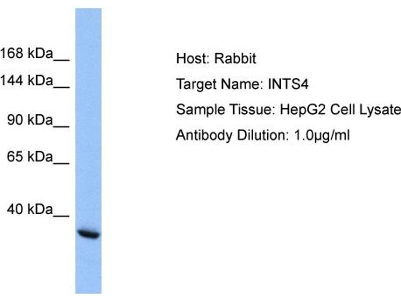 : "Generation and initial analysis of more than 15,000 full-length human and mouse cDNA sequences. ..." in: Proceedings of the National Academy of Sciences of the United States of America, Vol. 99, Issue 26, pp. 16899-903, (2002) (PubMed).Aliases for INTS4 Antibodies