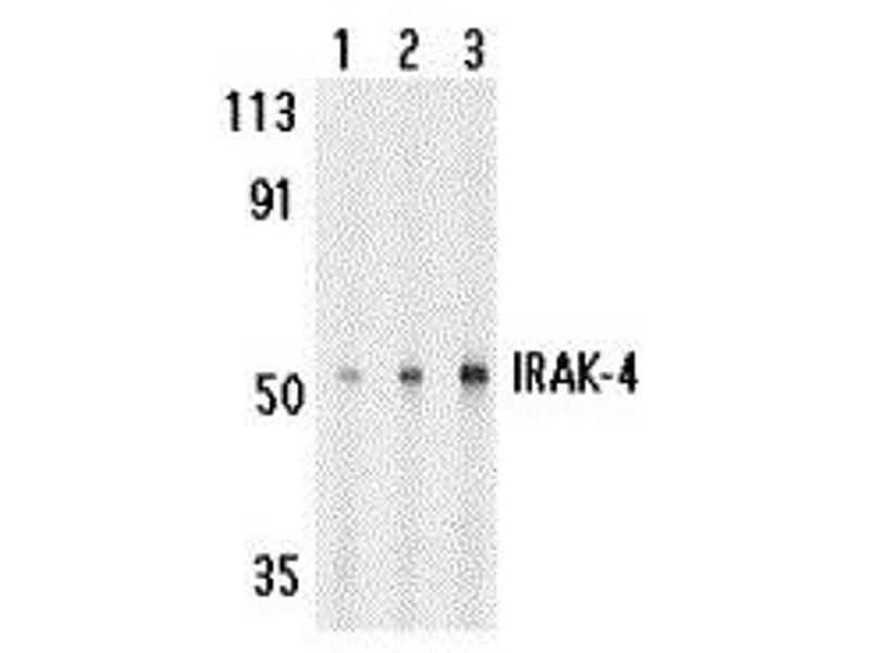 IRAK4 Reactivity: Human, Mouse WB, ELISA, IF (p), IHC (p), IF (cc), IHC (fro) Host: Rabbit Polyclonal unconjugated