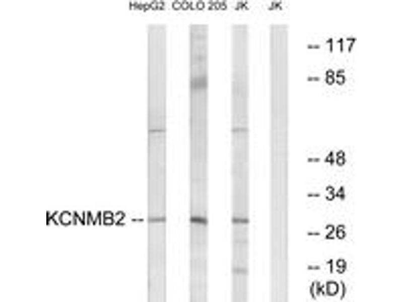potassium calcium-activated channel subfamily M regulatory beta subunit 2 (KCNMB2) Antibodiespotassium large conductance calcium-activated channel, subfamily M, beta member 2 (kcnmb2) Antibodies
