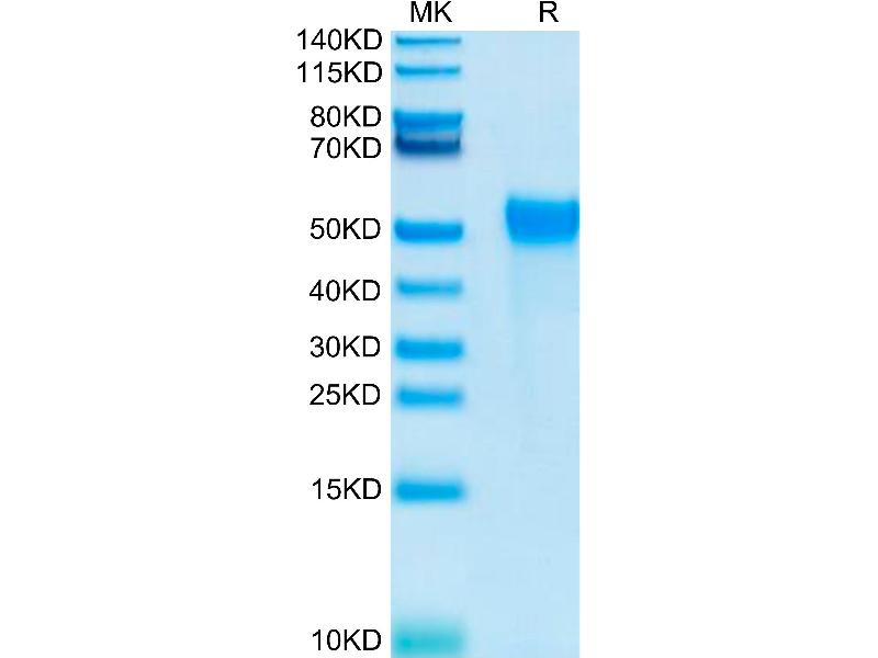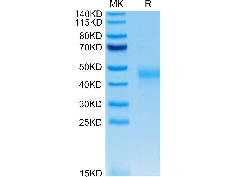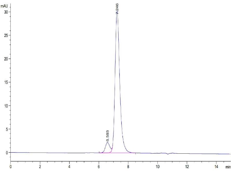 The purity of the protein is greater than 95 % as determined by SDS-PAGE and Coomassie blue staining.