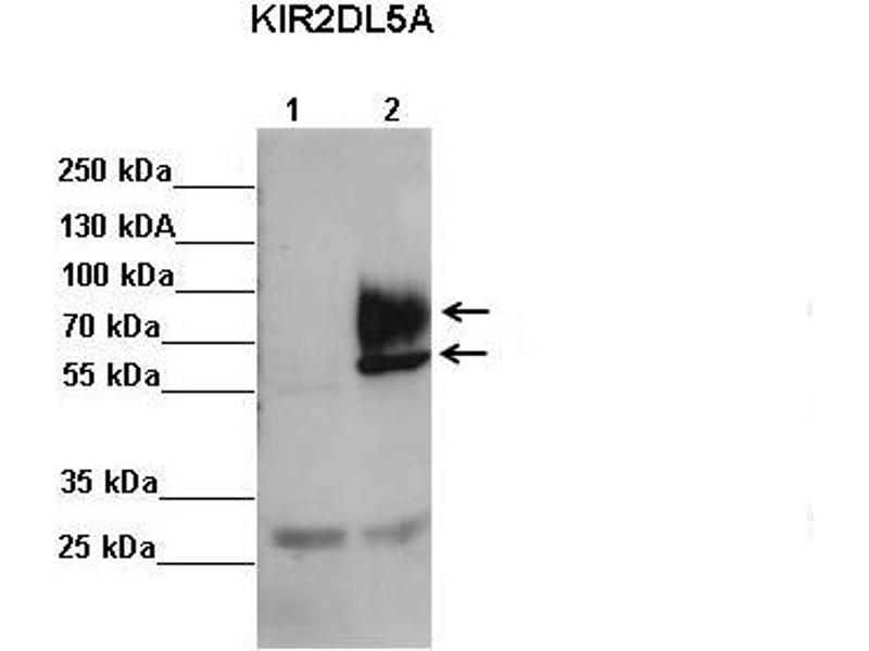 : "Human KIR2DL5 is an inhibitory receptor expressed on the surface of NK and T lymphocyte subsets." in: Journal of immunology (Baltimore, Md. : 1950), Vol. 178, Issue 7, pp. 4402-10, (2007) (PubMed).Aliases for KIR2DL5A Antibodies