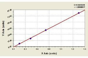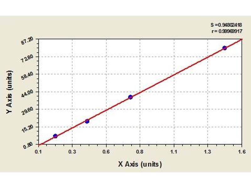 Create a standard curve by reducing the data using computer software capable of generating a four parameter logistic (4-PL) curve fit. As an alternative, construct a standard curve by plotting the mean absorbance for each standard on the x-axis against the concentration on the y-axis and draw a best fit curve through the points on the graph. The data may be linearized by plotting the log of the target antigen concentration versus the log of the O.D. and the best fit line can be determined by regression analysis. This procedure will produce an adequate but less precise fit of the data.