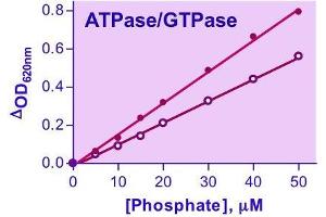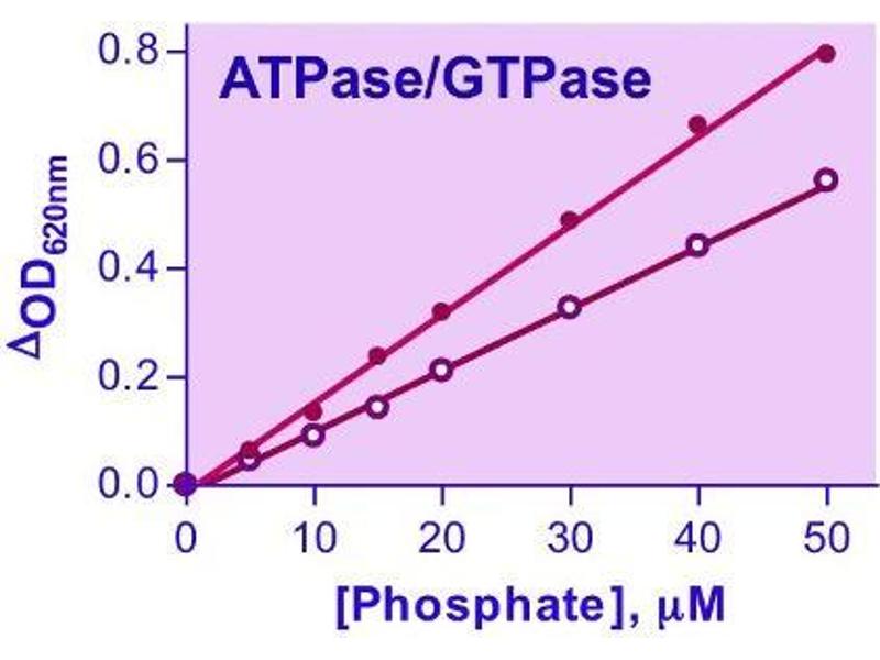 Quantitative determination of ATPase or GTPase activity by colorimetric (620nm) method. High-throµghput screening for ATPase/GTPase inhibitors.