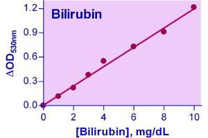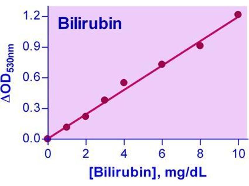 Sensitive and accurate. Detection limit 0.16 mg/dL bilirubin in 96-well plate assay.