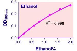 Alcoholic drinks are among the daily consumed beverages. Studies have shown heavy alcohol consumption may lead to various forms of liver diseases and to increased mortality rates. Quantitative determination of alcohol (ethanol, C2H5OH) finds applications in basic research, drug discovery, clinic studies and winery. Simple, direct and automation-ready procedures for measuring ethanol concentration are very desirable. This ethanol assay kit is based on an improved dichromate method, in which dichromate is reduced by ethanol to a bluish chromic (Cr 3+ ) product. The intensity of color, measured at 580 nm, is a direct measure of the alcohol concentration in the sample. The optimized formulation substantially reduces interference by substances in the raw samples and exhibits high sensitivity.