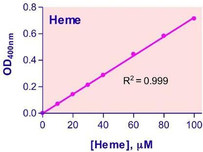 Sensitive and accurate. Linear detection range 0.6 - 125 µM heme in 96-well plate assay.